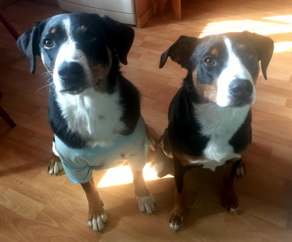Eikä tietysti niin paljoa hyvää ettei jotain huonoakin. Garan kiusaa tehnyt nisä tulehtui uudelleen ja kun tulehdus saatiin rauhoittumaan päätettiin kiusankappale poistaa kokonaan. Eli pääsiäisen jälkeisenä tiistaina kävi Gara leikkurissa ja on nyt hyvää vauhtia toipumassa. Tai siis eihän Gara itse ole moista pikku poistoa huomannut, mutta pidetään se nyt visusti pakkolomalla. Alku ainakin mennyt hyvin. Kriittisimmät päivät ovat takana ja Garakin vain kerran päässyt karkaamaan meidän perään pihalle juoksemaan. Onneksi luottolääkäri on tehnyt nättiä ja kestävää ristipistotyötä. Haava on edelleen siisti ja kauniisti kiinni.