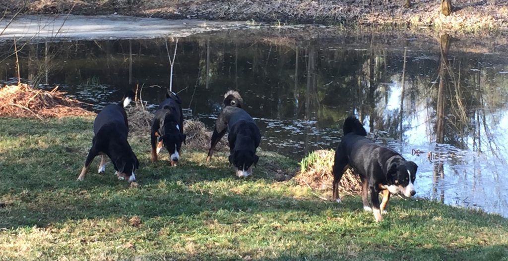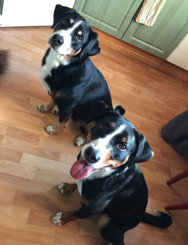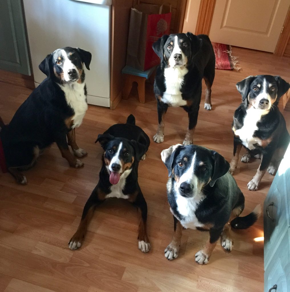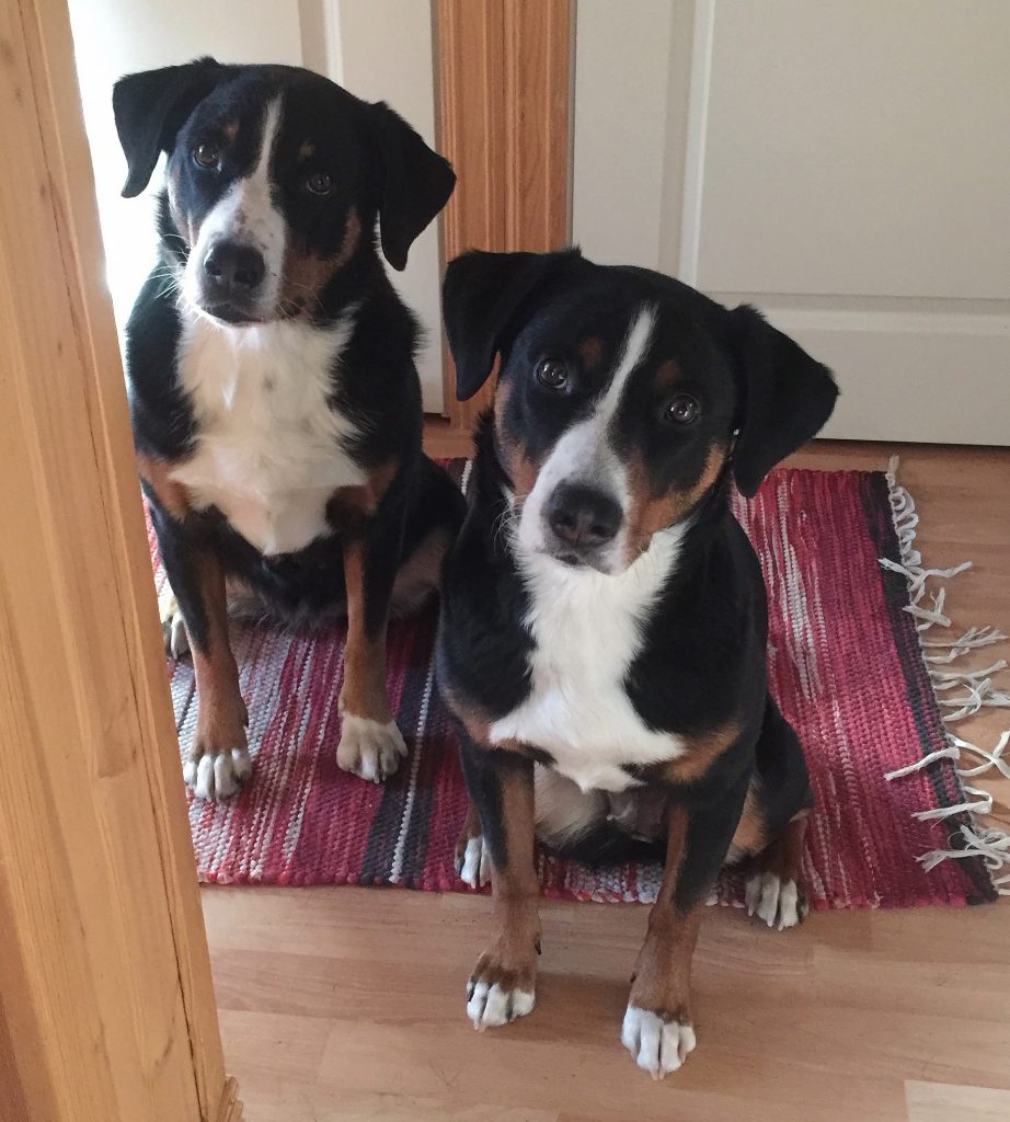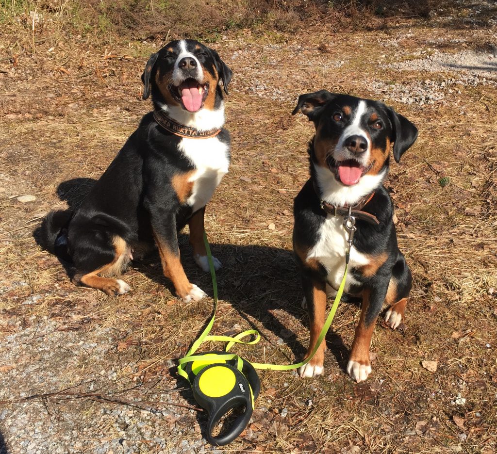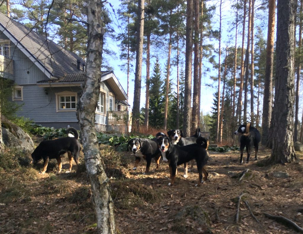 Vilkasta on ollut muutenkin, kun huhtikuun aikana saimme kyläilemään F-pentueen sijoitustytöt, ensin alkukuussa Femma Fiian eli Rullan ja loppukuussa Flirtti Friidun eli Iitun. Ikää tytöillä nyt 1v 7kk. Todella hauska oli seurata näitä sisaruksia, eroja ja yhtäläisyyksiä. Rulla selvästi perinyt enemmän luonnetta isänsä puolelta ja Iitu äitinsä puolelta. Yhteistä molemmille on avoin luonne ja miellyttämisen halu. Rulla kipakampi, Iitu maltillisempi. Molemmat tytöt solahtivat laumaan nopeasti ja arkailematta. Rulla vähän reteellä asenteella henkseleitä paukutellen mutta selkokieltä hyvin ymmärtäen. Iitu hyvin rauhallisella asenteella, tekemättä itsestään tai tulostaan mitään numeroa. Erittäin iloinen olen näistä nuorista nartuista ja niistä ominaisuuksista mitä ne ovat vanhemmiltaan saaneet. Päässä muhii jo monta ajatusta tulevista sulhasista, mitä ominaisuuksia siellä pitäisi olla ja mitä ei.