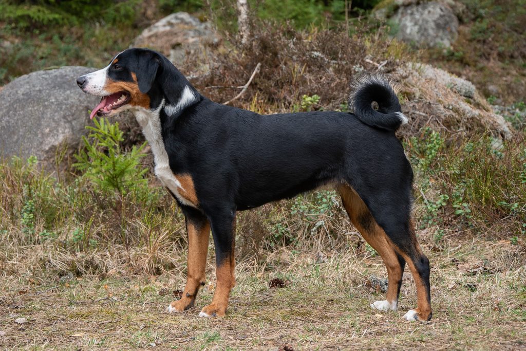”Excellent size & proportions. Typical head. Typical expression. Excellent neck, topline, tailset & carriage. Good chest & forechest. Parallel position of legs with correct angulations. Good temperament. Free movement”.