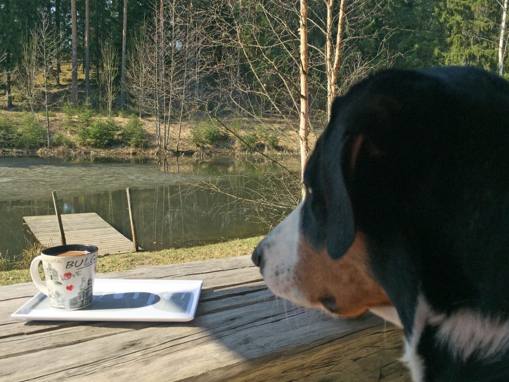 Kurkia, joutsenia, telkkiä, sorsia, metsoja ja lukematon määrä muita lintuja on kevään edetessä ilmestynyt lähimaastoon ja pihapiiriin. Myös rantakäärme ja sisiliskot ovat heränneet koloistaan. Mulla ja koirilla riittää siis seurattavaa kun nautimme kauniista kevätaamuista ja -illoista kotipihalla. Välillä tosin on enemmänkin äänekästä kun peura sonnit mylvivät ja mittelevät voimiaan ihan aidan takana ja kurkipariskunta huutaa kevätriemuaan tontin toisella puolella.