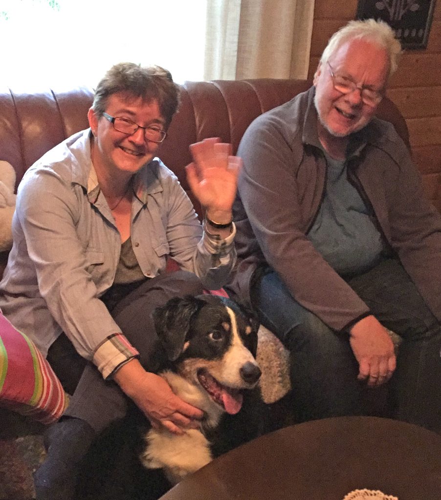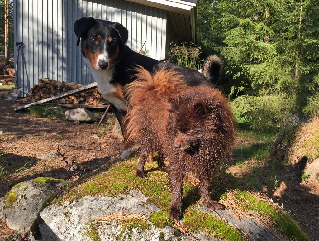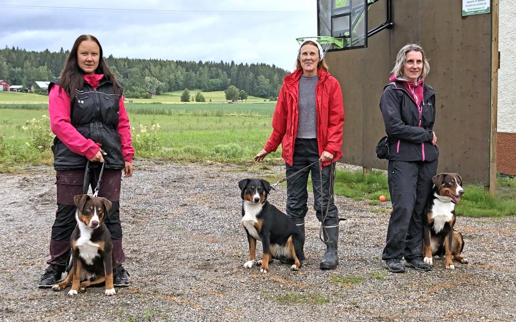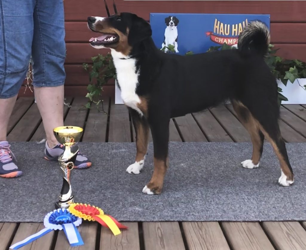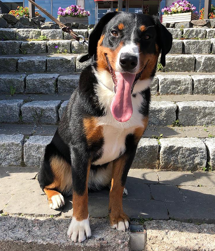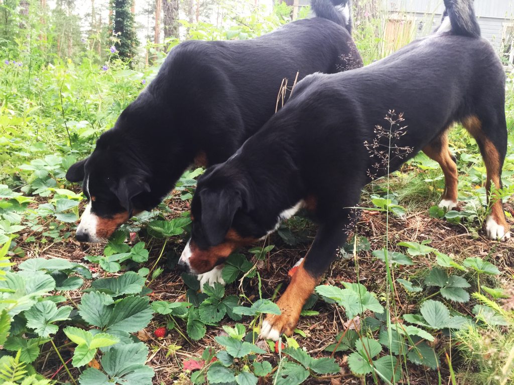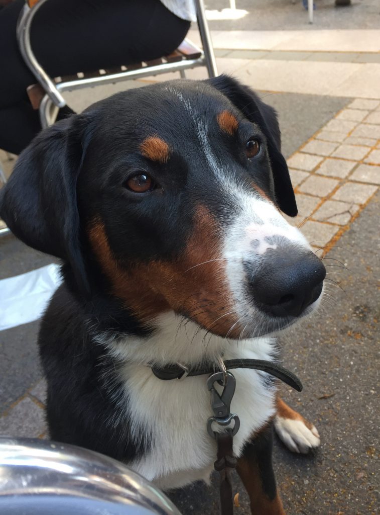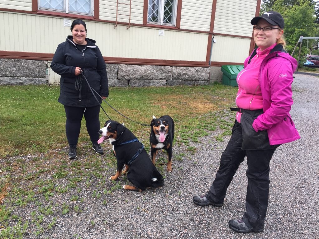 Heinäkuu toi tullessaan meille myös vieraita Sveitsistä, kun Sveitsin appenzelliyhdistyksen puheenjohtaja saapui miehensä kanssa lomalle Suomeen. Erittäin mielenkiintoista ja mukavaa oli vaihtaa rodun kuulumisia puolin ja toisin sekä tietysti päästä näyttämään muutamia suomalaisia appenzelleja heille. Iso kiitos kaikille jotka saapuivat pikkutreffeillemme Mynämäkeen koiransa kanssa. Ihana oli kaikkia teitä nähdä ja näyttää vieraillemme. Vieraidemme kanssa kävimme hyviä keskusteluja tietysti itse koirista, mutta myös kasvatustoiminnan eroista kun verrataan Suomea ja Sveitsiä keskenään. Uskon, että heidän mukanaan Sveitsiin lähti, paitsi kasa Sennenlehtiä, myös hyviä ja positiivisia ajatuksia suomalaisesta appenzellikasvatuksesta. Vastavuoroisesti saimme itse paljon hyvää ja tarpeellista tietoa. Samaan aikaan sveitsinvieraidemme kanssa jäi Ria meille viikoksi lomalle. Lapsukainen edusti hienosti sekä sveitsiläisten vierailun ajan, että myöhemmin samalla viikolla Mikan mukana toimistokoirana töissä ja kävelyllä Turussa jokirannassa sekä ravintolan terassilla. Harvoin (jos koskaan) olen liikkunut niin helpon ja hienosti käyttäytyvän junnuappenzellin kanssa.